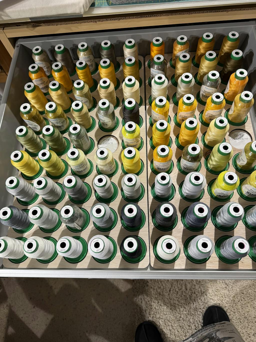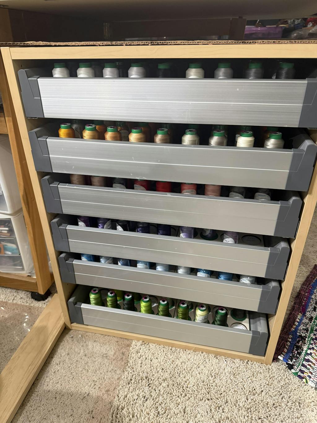 It is everything I wanted! All my Isacord threads in one place. My custom thread trays fit perfect.